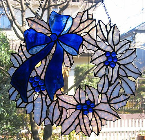 当時この色の組み合わせがステンドグラス教室で流行りました。大人っぽいリースで気に入っています。
