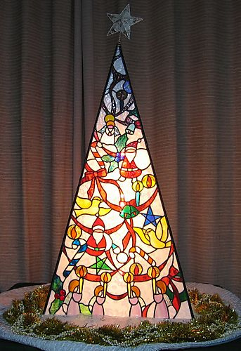 同じ図柄のものを3枚作り、三角錐に組み立てます。3枚は、それぞれ少しずつガラスの色が違います。