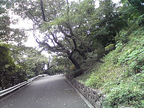 ↓通りに面した門を過ぎて、都心とは思えない樹木に覆われた坂道を上ると、正面玄関に着きます。