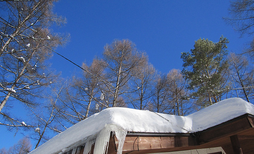 朝 散歩に出かけると、除雪車が来ていない所では、膝までの長靴がずぼずぼ埋まってしまうほど雪が積っています。そんな所でもランディは雪の中を泳ぐように進みます。