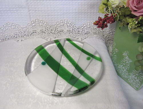 このお皿は地震前に作りかけていたものですが、まだ雪が残る蓼科の山に早く新緑の季節が来ないかしら・・と思って作っていました。